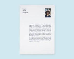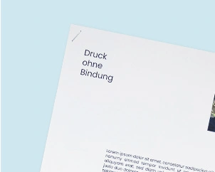 The corner stapling method is a simple and efficient solution to bind up to 100 sheets (double-sided printing possible) mechanically. This binding is ideal for smaller quantities where a quick and inexpensive finish is desired. Corner stapling keeps your documents securely and neatly together – perfect for brochures, catalogs, or manuals.