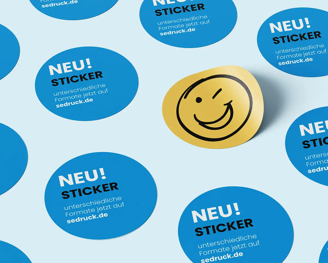 Lassen Sie hochwertige Aufkleber direkt bei sedruck.de gestalten und drucken. Wählen Sie aus einer Vielzahl an Formaten, Materialien und Veredelungen die perfekte Lösung für Ihren Einsatzbereich.