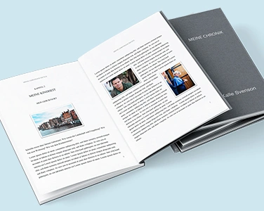 The ultimate in hardcover books is the handmade book. A more flexible book block allows the book to open more easily. Stitching the book block ensures very high durability. Various formats from A6 to A4, and even your custom format, can be handcrafted in our bookbinding workshop.