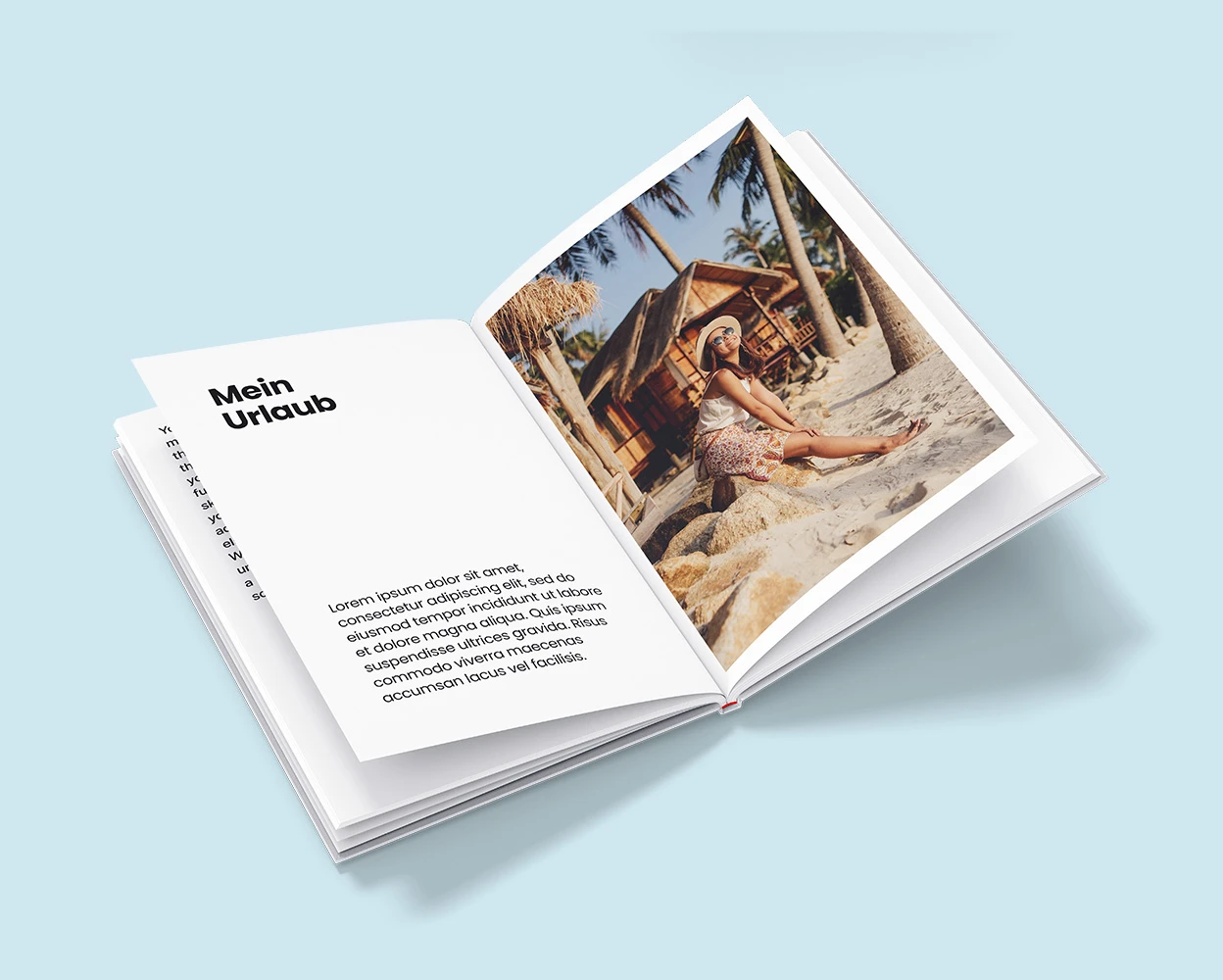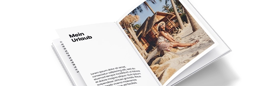 Aufgeschlagenes Fotobuch in Din A4 mit Urlaubsfoto