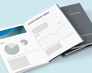 With individual embossing or a hardcover print, your master thesis becomes a unique work. At sedruck.de, a wide selection of hardcover colors and materials is available. Especially popular: printing the entire cover sheet on the hardcover, so the reader immediately knows the topic of your thesis.