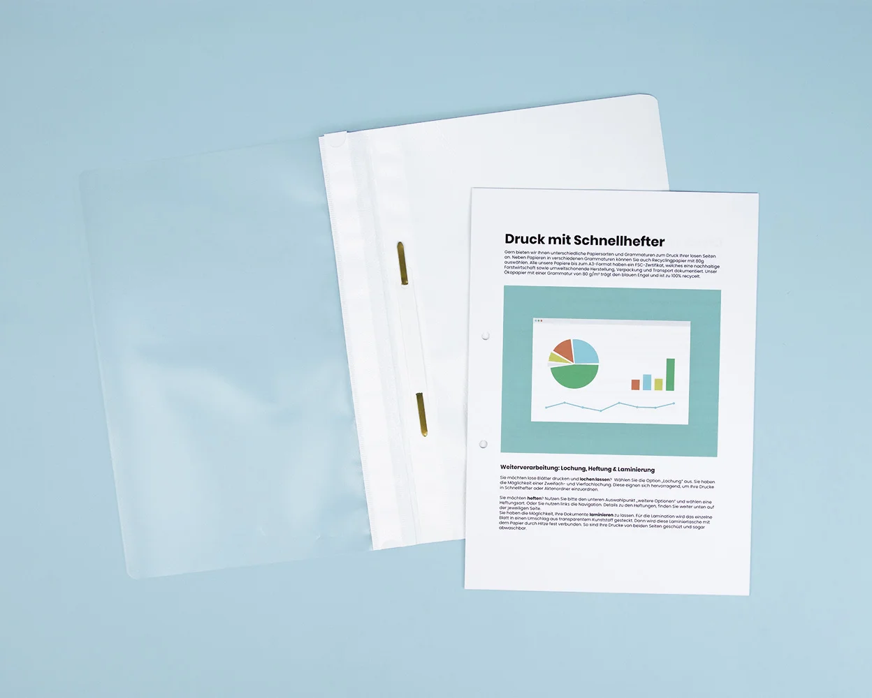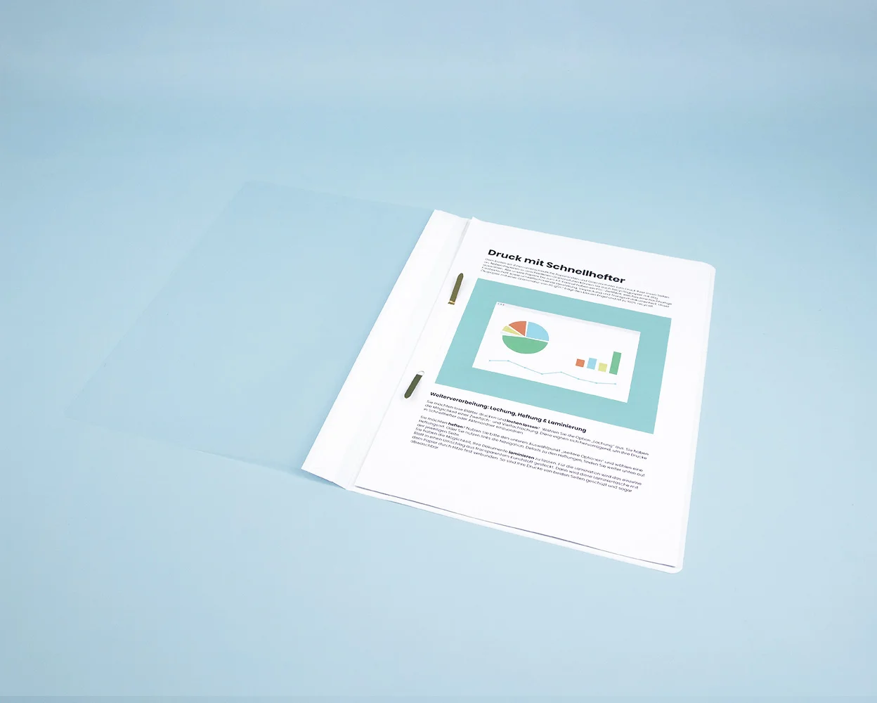 Optimize your document organization with our high-quality printing service including white report covers. Our report covers are made of durable plastic, feature a transparent front cover, and a metal filing strip that ensures secure binding.