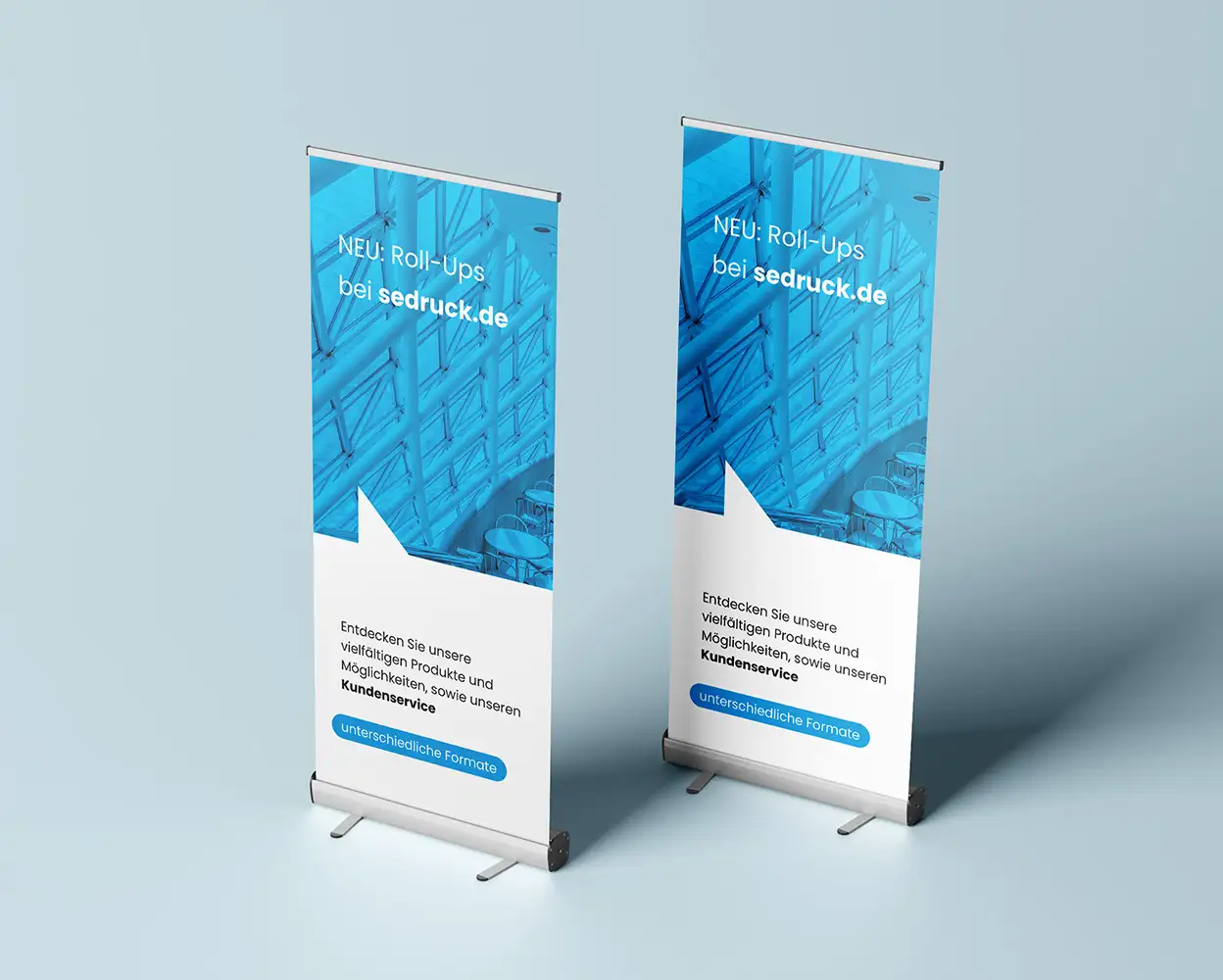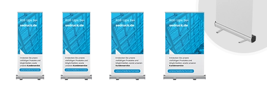 Stand out at trade shows, presentations, and in-store with our Roll-Up Classics. We provide the full roll-up system including banner printing. A wide range of banner materials is available to suit your needs.